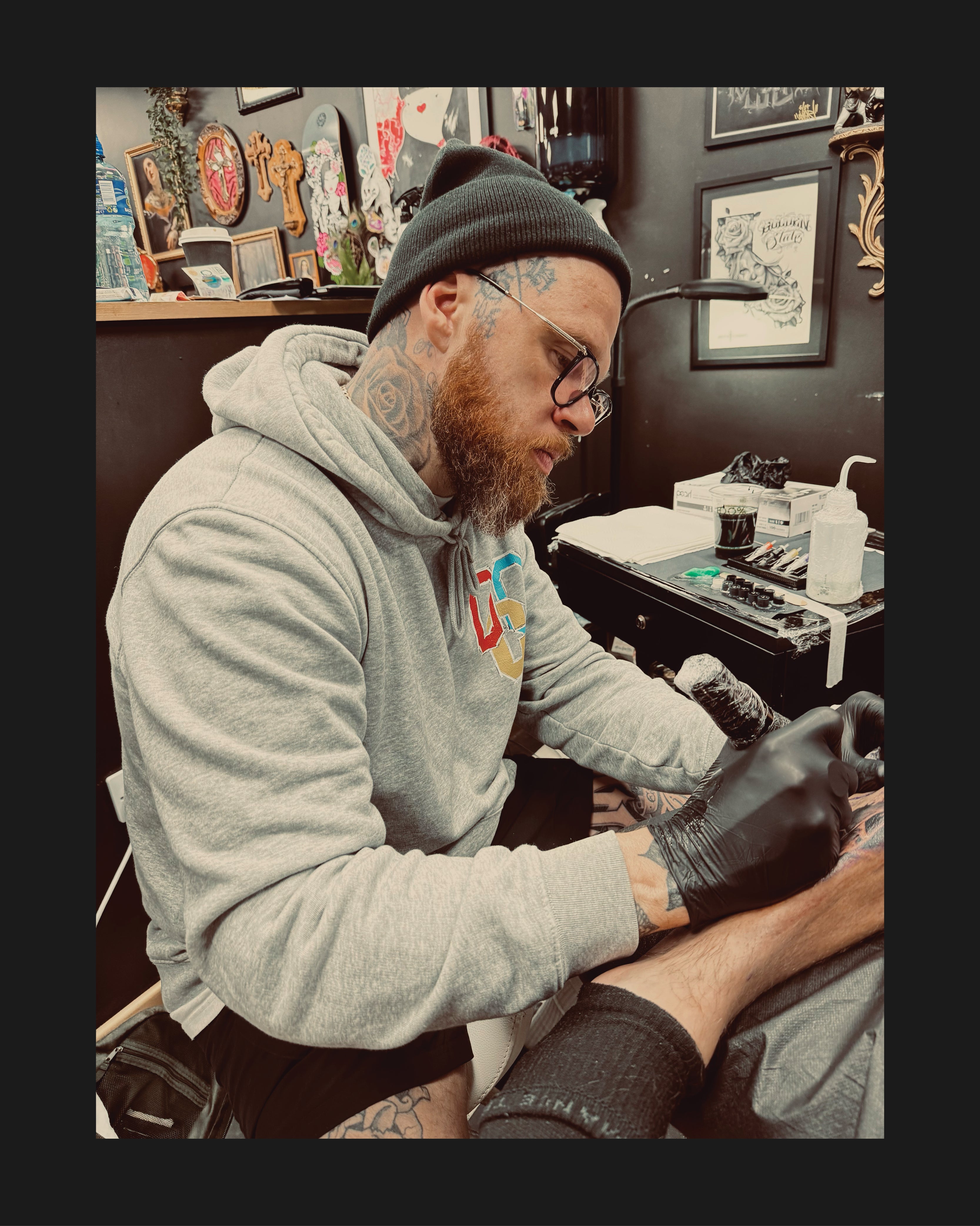 I’m originally from the UK and moved to Guernsey in 2005. I started my tattoo career in 2013, opened my first studio in 2020, and haven’t looked back since. I now have two other artists who work alongside me, and I couldn’t be more grateful for the support and friendship I share with them. Art and tattooing are my passion; I put my all into what I do, and I’m so proud and honored to be a part of the Monsters Ink team.